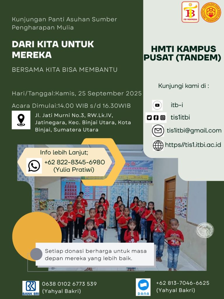Deli serdang, 25 September 2025 – HMTI mengadakan acara kegiatan bakti sosial ke panti asuhan SUMBER PENGHARAPAN MULIA. Kegiatan Bakti Sosial ini bertujuan untuk berbagi kepada sesama, mempererat tali silaturahmi dan menyebarkan kebahagiaan bersama anak anak panti asuhan Sumber Pengharapan Mulia. Selain itu, kegiatan tersebut juga dapat memberikan motivasi dan semangat belajar kepada anak-anak panti, dan membuka wawasan tentang kehidupan sosial di sekitar.